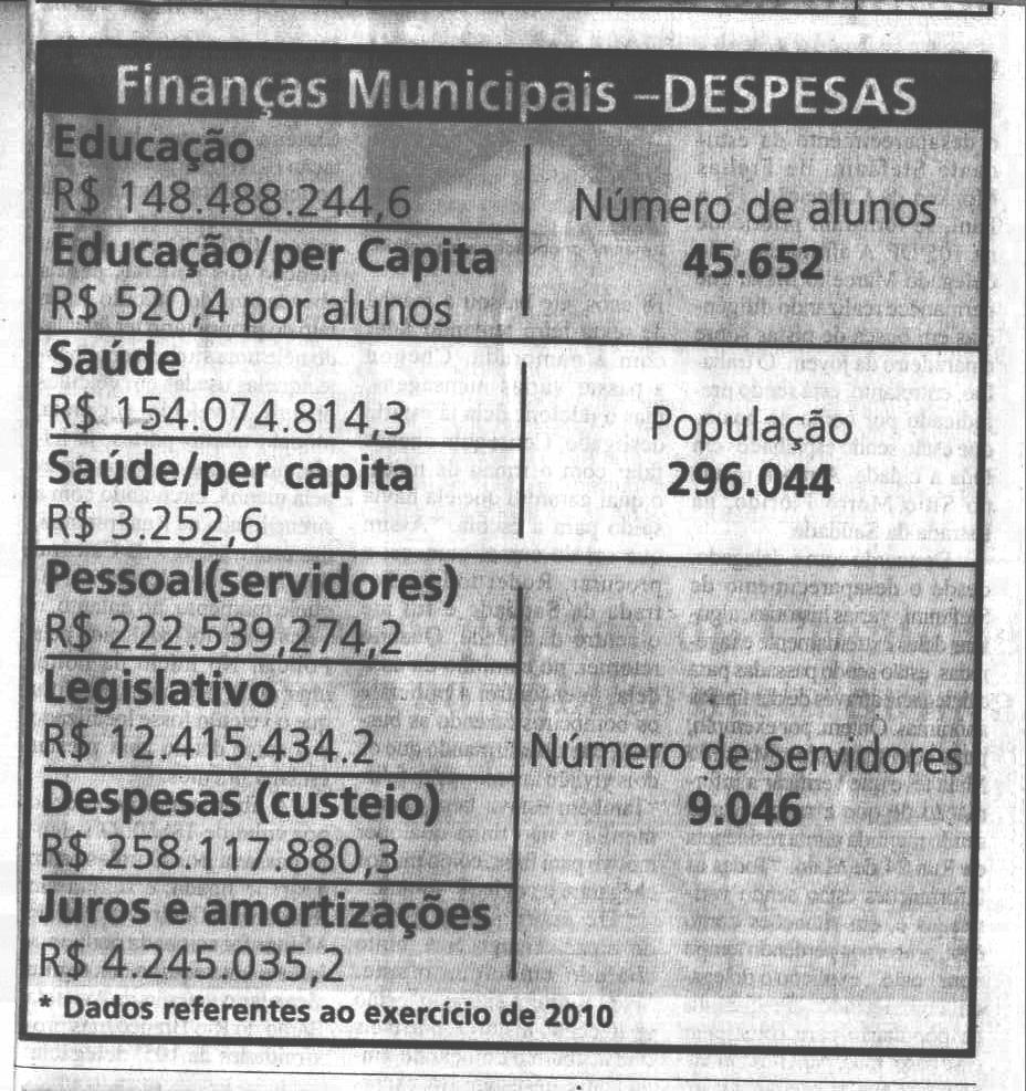 Despesas com saúde e educação foram superiores a R$ 300 milhões