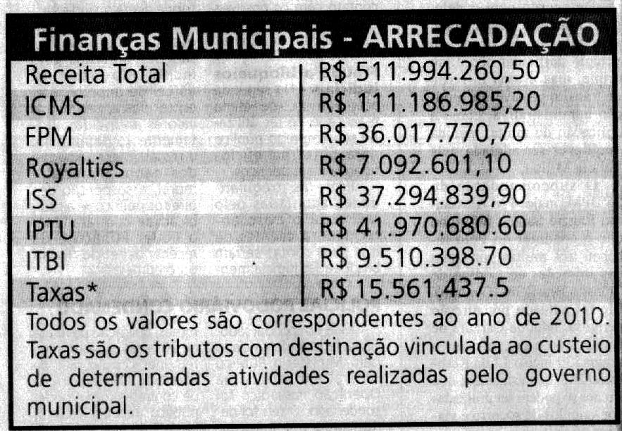 Petrópolis também ficou entre os cinco municípios que obtiveram maior arrecadação com o Fundo de Participação Municipal (R$ 36.017.770,70), IPTU (R$ 419.970.690,60) e ITBI (R$ 9.510.398,70). Já com os royalties do petróleo, a cidade ficou em 32º, arrecadando R$ 7.092.601,10 em 2010.