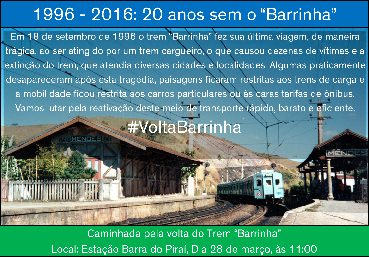 Manifestação sábado, dia 28/03, na Est. Barra do Piraí às 11h:00 pela volta do Barrinha