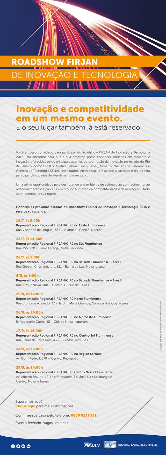 CONVITE: ROADSHOW FIRJAN DE INOVAÇÃO E TECNOLOGIA - 24 SETEMBRO 2015 - RR Serrana FIRJAN