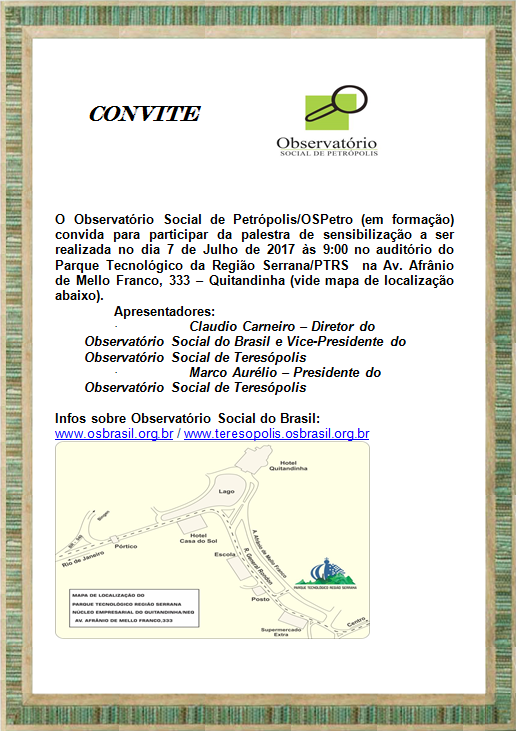 O Observatório Social de Petrópolis (OSPETRO), em fase de criação, é filiado ao Observatório Social do Brasil (OSB) e está presente em cerca de 120 municípios do Brasil com relevantes resultados de economia nos gastos do executivo e legislativo locais.