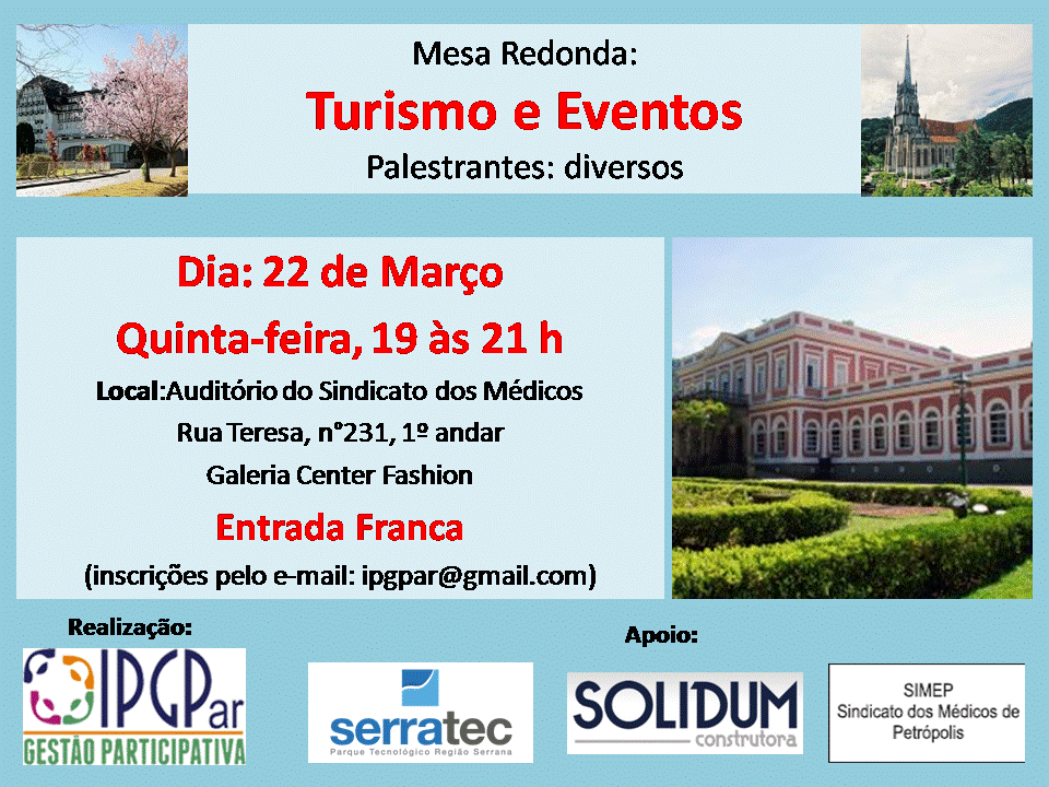 IPGPar: Vocações Econômicas de Petrópolis – Mesa Redonda sobre Turismo e Eventos - 22/03 - 19h