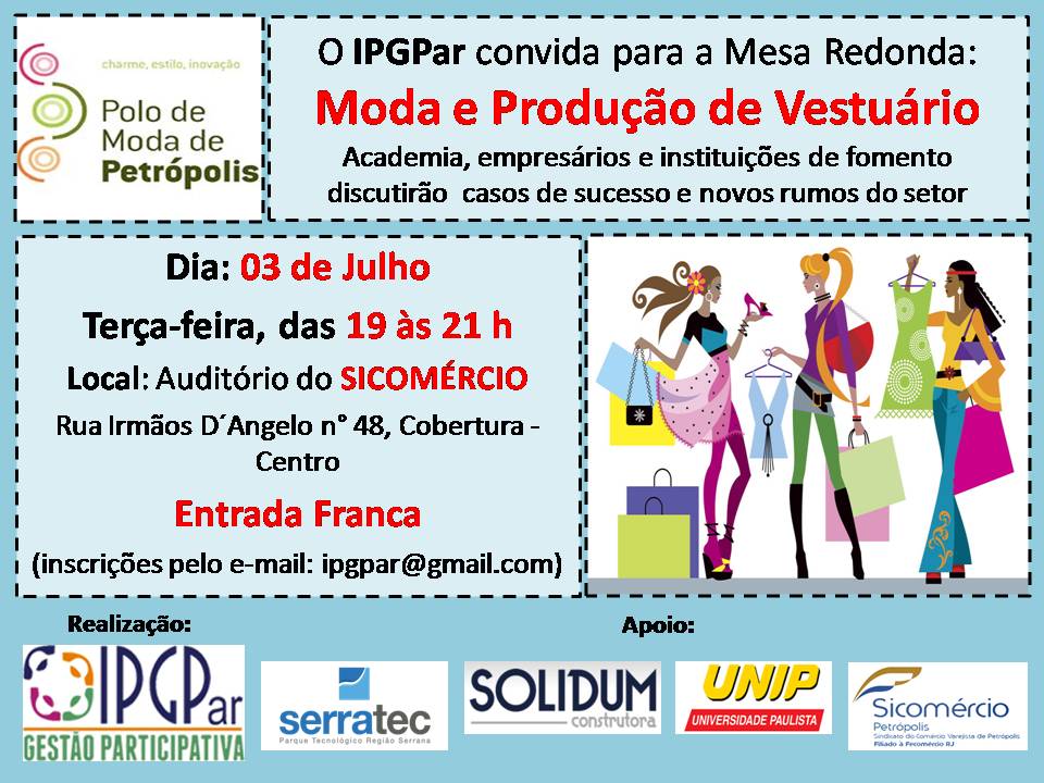 IPGPar: Vocações Econômicas de Petrópolis – Mesa Redonda sobre Moda e Produção de Vestuário – Sicomércio – 03.Jul – 19h